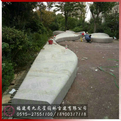 公園休憩異型長(zhǎng)石凳九龍星園林古建案例作品