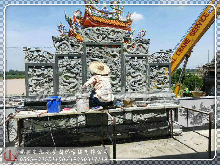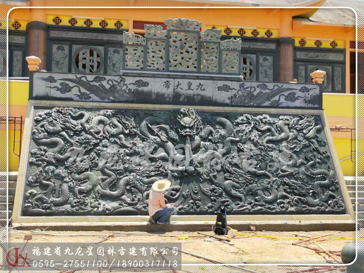 青石浮雕大型石雕屏風雙面雕龍工藝品 精致古典